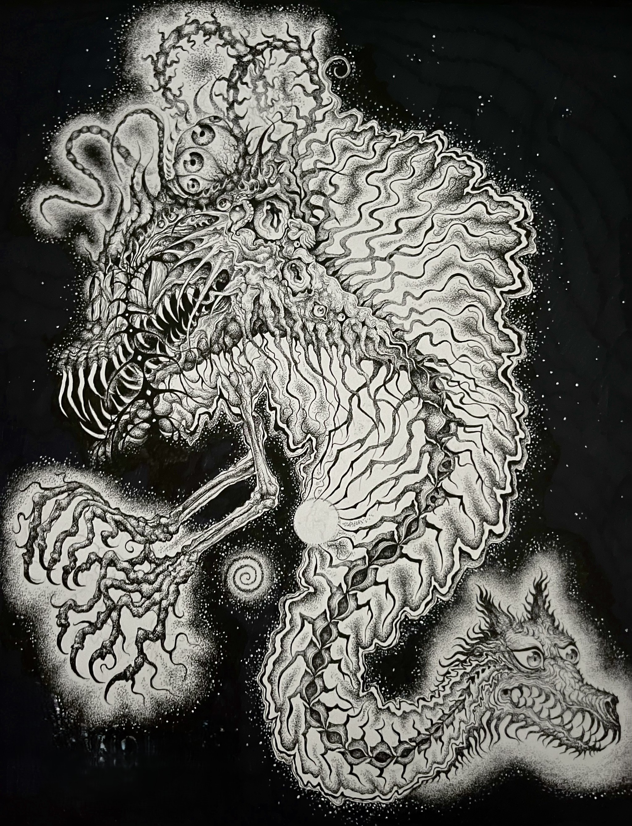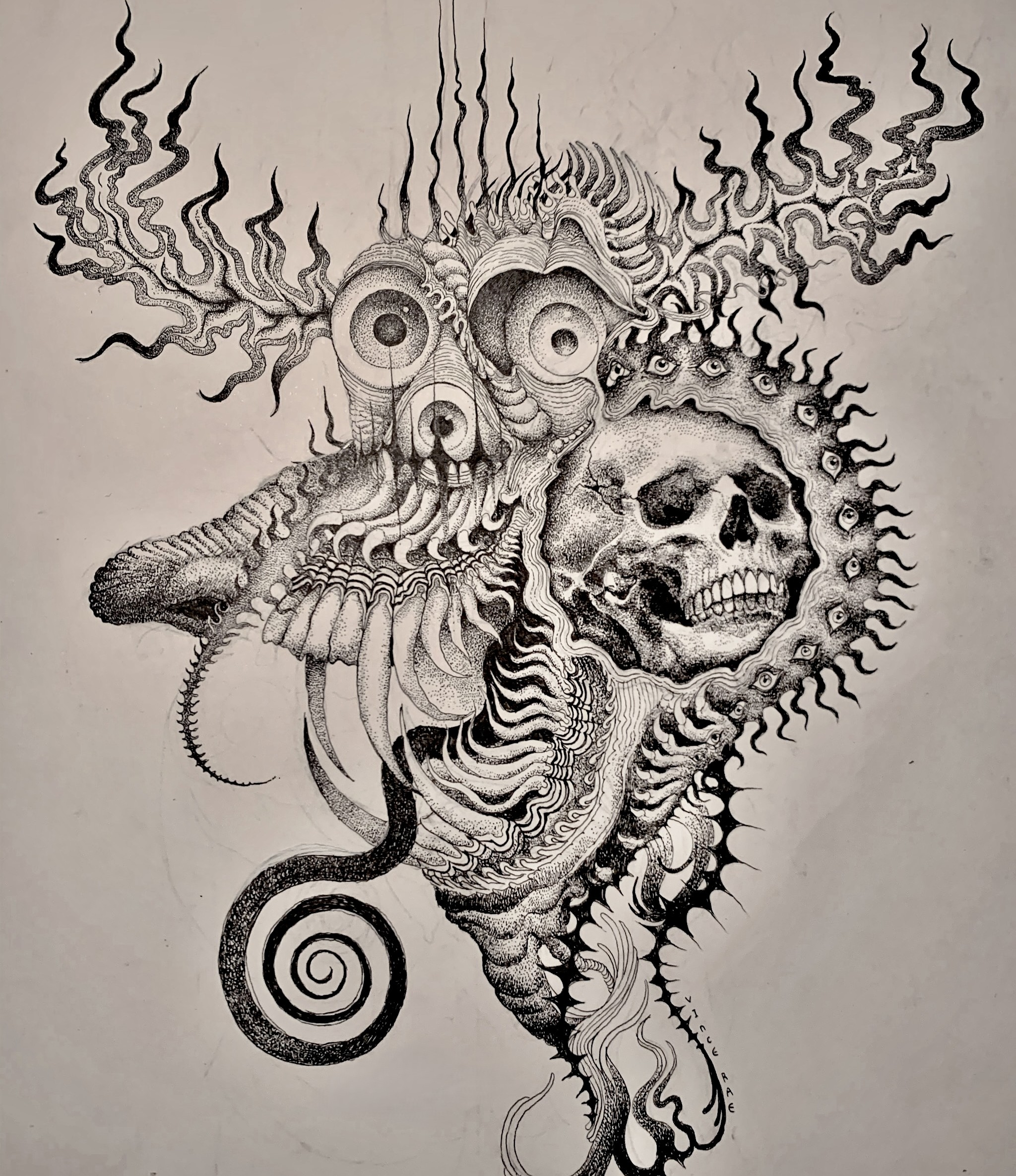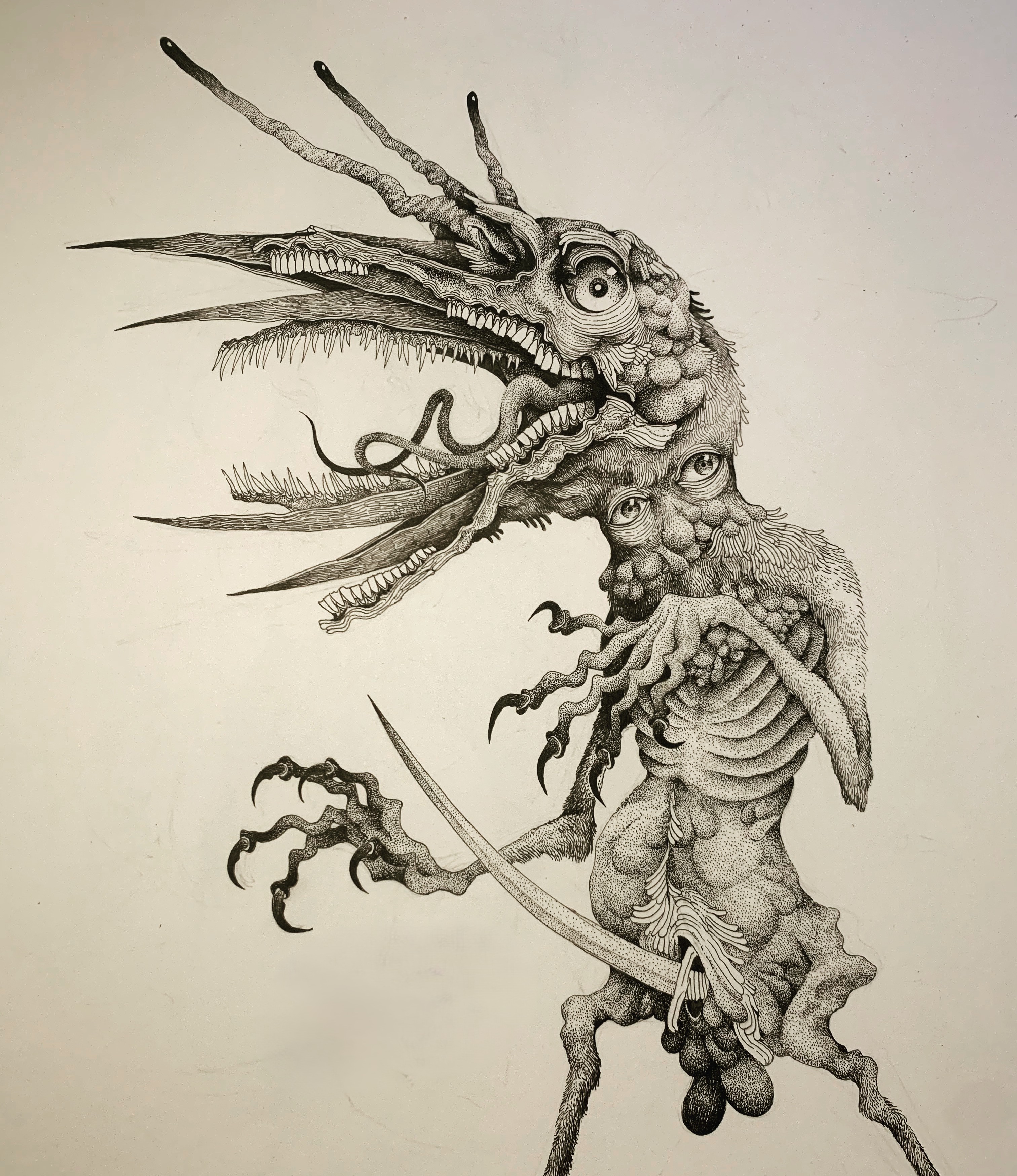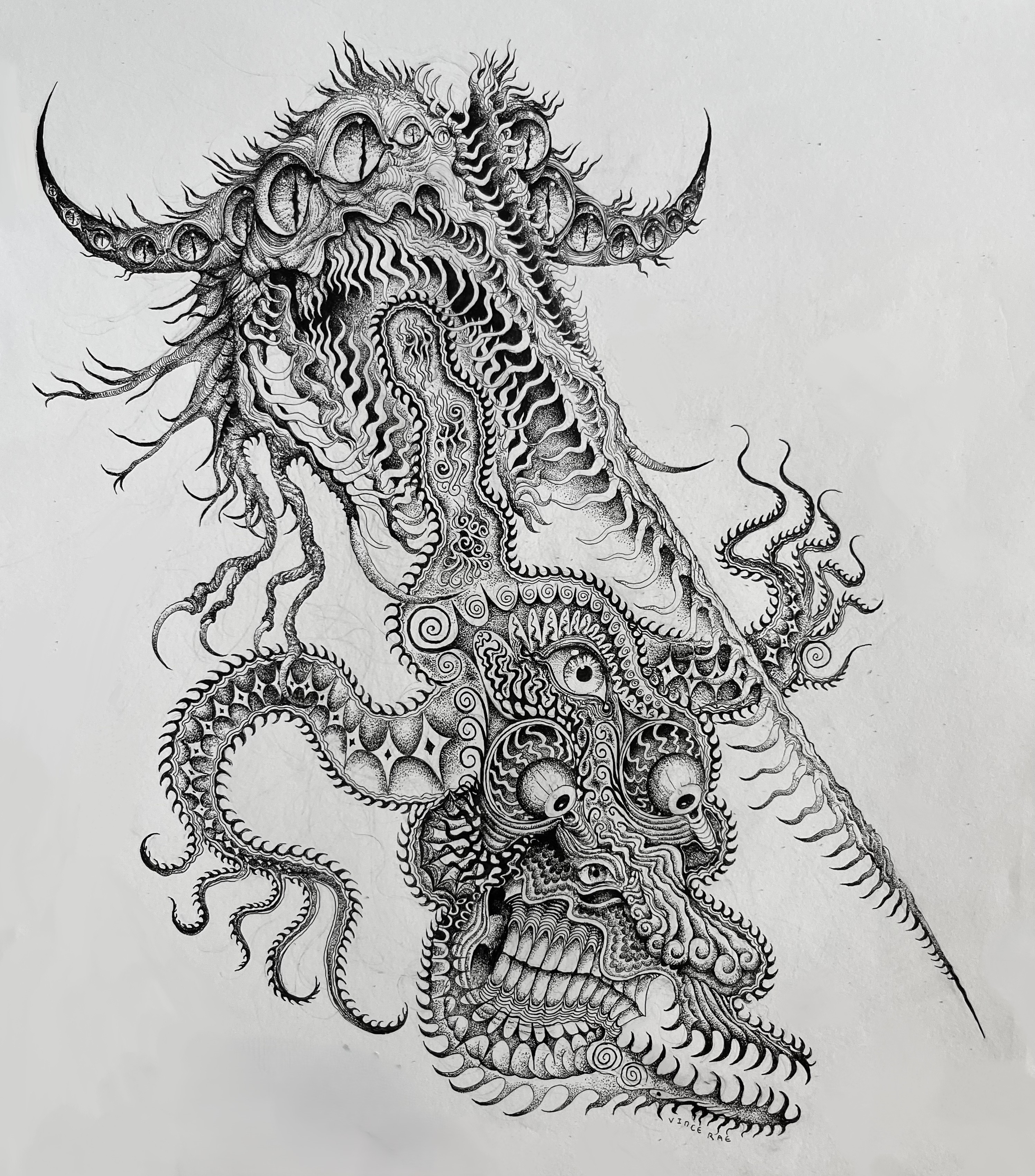 A lot of my stipple drawings are pretty old, back when I peaked in highschool and was able to draw whatever throughout covid classtimes. I find solace in the dots. I might complete what- one "large" ink project in a year? It feels rare I get to do them nowadays.